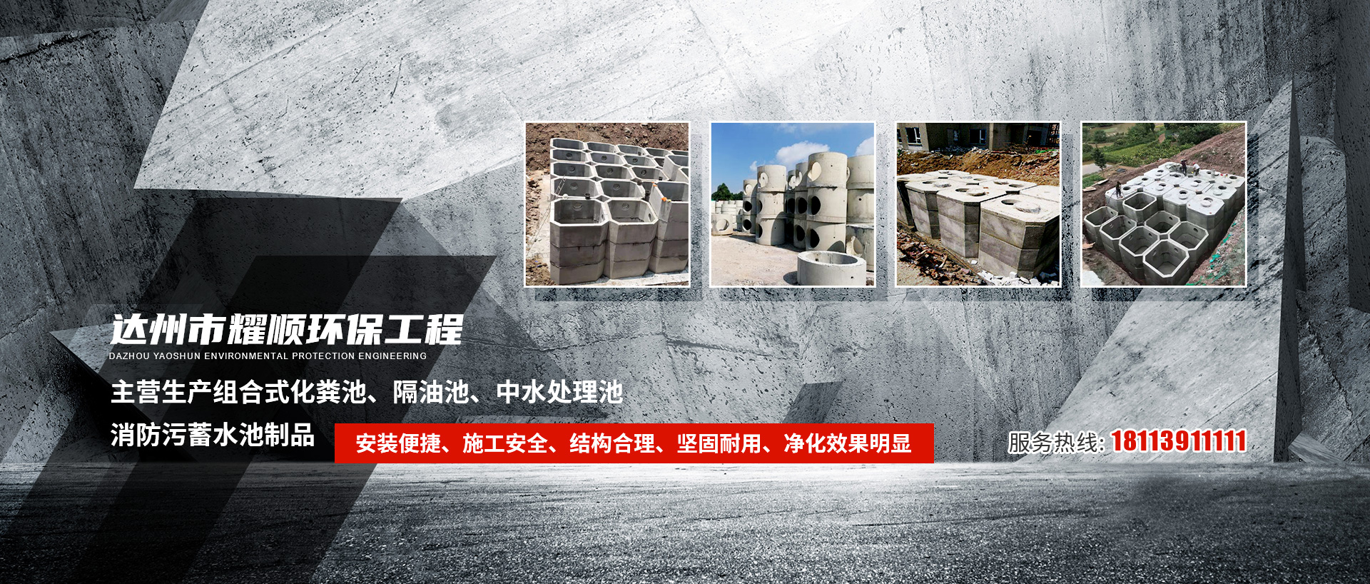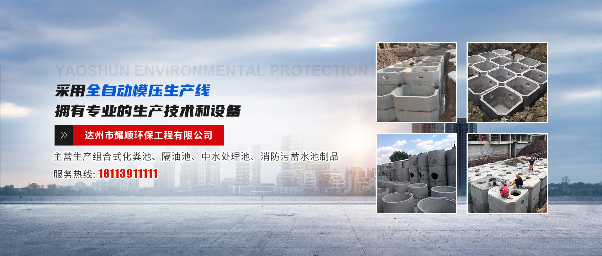 達州市耀順環(huán)保工程有限公司位于四川東北部、達州市中部通川區(qū)。本公司采用全自動模壓生產(chǎn)線,擁有專業(yè)的生產(chǎn)技術(shù)和設備,同時擁有一支專業(yè)的施工隊伍。本公司堅持質(zhì)量第一、互惠發(fā)展,讓您的居住環(huán)境更美、更舒適,是我們工人的宗旨。本公司愿與廣大建筑同仁一道,為美化城市作出貢獻。我公司現(xiàn)生產(chǎn)組合式化糞池、隔油池、中水處理池、消防污蓄水池制品。我們的產(chǎn)品在建筑工程中不斷接受檢驗,具有安裝便捷、施工安全、用時短、結(jié)構(gòu)合理、堅固耐用、抗?jié)B性能好、凈化效果明顯、經(jīng)濟合理的優(yōu)特點。...